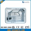 hot tub features: 1) Dimensions: 2,080 x 1,615 x 970mm 2) Seating capacity: 3 people 3) Water capacity: 860L water 4) Weight (with water): 1,050kg 5) Shell: imported acrylic 6) Shell color: marble white/blue/black 7) Nozzles: 6 dense outlet nozzles a) 1 punchy spondyle massage nozzles b) 2 whirly massage nozzles c) 1 seven-hole nozzle d) 2 nozzles can be adjust direction e) 1 punchy volar massage nozzles 8) Digital controller: smart integrative digital controller: can control: all the electrical parts, can control the working time and water temperature 9) Light: 1pc 30W LED high light, 7 color wall lamp, 2pcs 3W LED seven color fountain light 10) Spa heater: 3kW 11) Flotation: 2 cartridge filters 12) Water pump: 1pc 150W circulation pump, 1pc 2.0HP massage pump 13) Air pump: 120W 14) External material: yate, cedar ore white pine timber 15) Sterilize: ozone one set; water disposal system: active carbon, argentums hydronium, etc. 16) Voltage: 230V / 110V 17) Phase: 1/3 18) Heat preservation: isolation foam around and bottom 19) Cover: leatheroid with isolation foam 20) CD/DVD and TV system: with or without 21) Bubble device 22) Add speaker under water 23) Stainless steal bracket 24) ORP/PH digital controller: 1 setMain Characteristics of Hot Tubs 1. Jet system Jets systems with different functions are installed in every ergonomic hot tub. With powerful massage pumps, these jets system can bring you the best experience of massage and efficiently reduce any accumulated fatigue in your muscle. 1) Back-scanning Jet system 2) Seven-hole jet system 3) Rotational jet system 4) Intensive-directional jet system 5) Precise jet system 6) Dense small jet system 7) Bubble jet system 8) Essential oil 9) You can choose two different jets 2. Exceptional lighting system We use high-intensity LED lights in our hot tubs. These LED lights are brighter than normal lights but more energy efficient. You could pick up one color to suit your mood or cycle through all colors, it is just your choice! The hot tubs are equipped with 30w main light, sparkling water-level light, colorful fountain and waterfall light as well. Combining with our outstanding music and video system, these colorful lights will give your exceptional experience. 3. TV and music system. According to your requirement, our hot tubs can be equipped with 15 17 inch TV with waterproof remote control to realize TV and DVD function, and also can be equipped with audio system to work with the TV or let you listen to your favorite radio channel. Both TV an speakers can be automatically lifted up or folded in by pressing one button. You will find that your hot tub is your favorite place after working. 4. Heater and filtration system They are the heart of the whole hot tub system which must work for a long time and can resist high temperature and corrosion of water and chemicals. Therefore the quality of these two systems are crucial for hot tubs to operate safely and reliably, and important for efficient filtering and energy efficiency as well. Heater is the most vulnerable part of the hot tub systems. We construct the heating elements with special stainless steel and coated with Teflon so that they are resistive to corrosion and ion agglomeration. With the exclusive intelligent heating-by-section function (balance the work load), the heater is high efficiency, energy saving and durable. The filtration system is a combination of nonwoven fiber filter, silver ion activated carbon, medical stone and ozone system (generator, atomizer and mixer), to give you totally pure, clean water for your spa. 5. Advanced and reliable control system With ten year nonstop research and development, Keya brings you an easy and reliable operating, high quality control system. The control system consists of two parts: the control panel and circuit box. User can switch between different operating mode through the control panel, such as; commerce mode (COMMERCE), family mode (FAMILY), sleep mode (SLEEP), and pause mode (PAUSE). The control panel also offers a visible way to examine the status of the hot tub. By pressing the corresponding buttons, user can set the temperature (in both and ) and time (including the starting and stop time of the heat preserving function in FAMILY mode); start massage pumps and air pump; turn on and off the light or cycle through colors. The hot tub system will operate differently according to different setting. Specifically when the heating preserving function of Family mode is off or under SLEEP mode, the hot tub will run with low temperature to save energy. The force electricity and weak electricity are separated inside the circuit box and electronic sensors are used instead of conventional mechanical water flow sensor and water level sensor. Therefore, all these designs guarantee a stable and reliable system. The control systems adopted by the hot tubs have self-diagnose function and double-protection. All diagnose information will be displayed on the LCD panel to remind the user for safety or trouble-shooting. The independent over-heat protection system will cut off power when unsafe temperature has been detected. For cold countries, an independent anti-freeze protection system can be installed which can activate the heater to avoid any damage caused by frozen. 6. Spa shell We use high-quality LUCITE acryl as the hot tub shell to provide great resistance to temperature, abrasion and UV. With the benefit of great stretch ability of the LUCITE acryl, we are honored to present you the aesthetic, streamlining and comfortable Spa shell which is exclusive to our company. 7. Spa cabinet We offer customer with two kinds of material for your Spa cabinet: a) Natural wood: you can choose from various natural woods which give you the natural warmth and represent your nobleness. b) Rigid polymers cabinet is durable and easy for maintenance. 8. Cover We choose the high quality leatherette which is qualified for the ASTM Ultra-Violet 2000 exposure test for y
